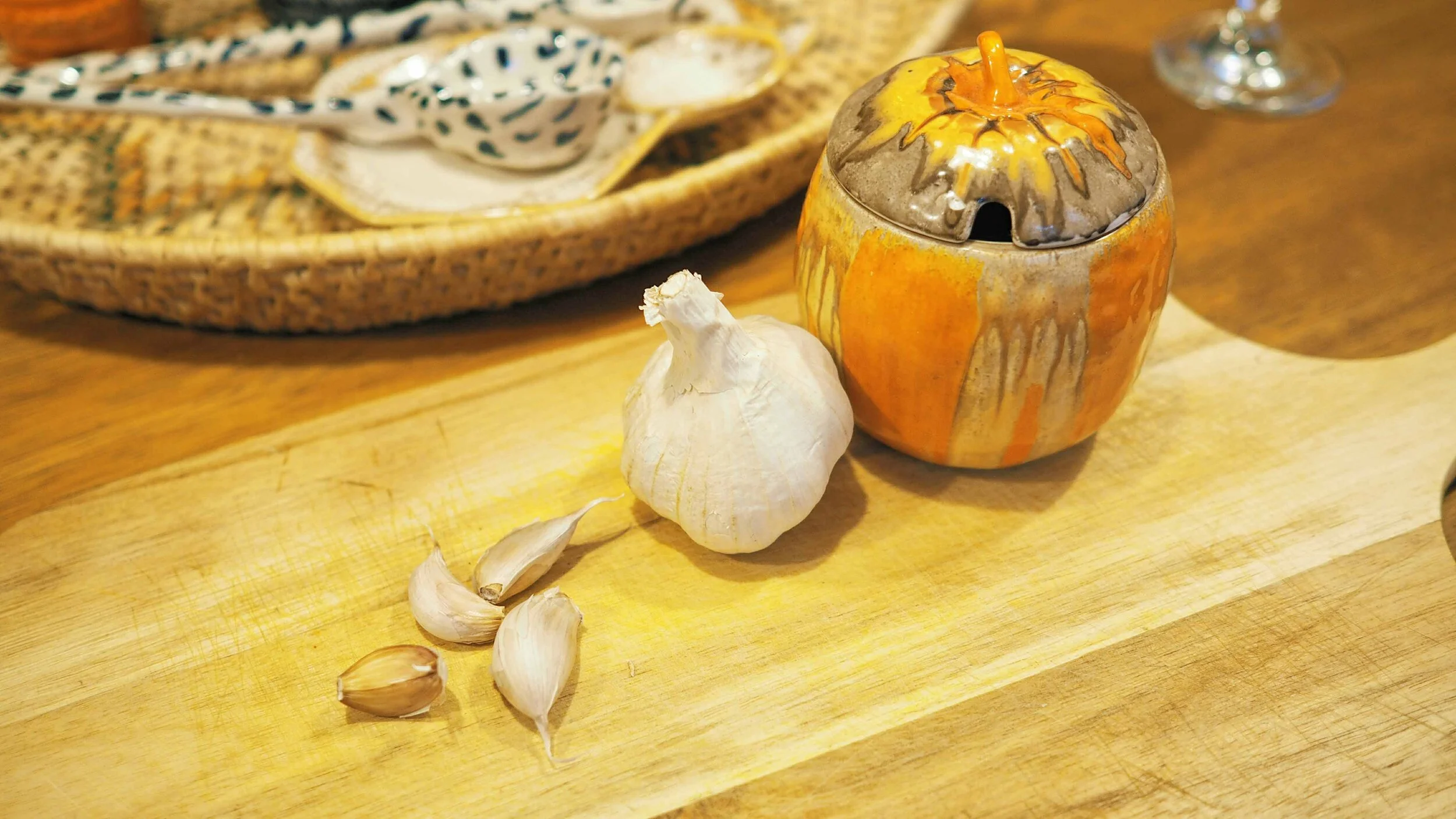 We love a bit of garlic in our roasties, but if it’s not for you, then you can skip! However if your partial like us, then while potatoes are cooking, peel & smash 4 small garlic cloves. On a garlic scale this will produce a medium garlic taste to your potatoes.