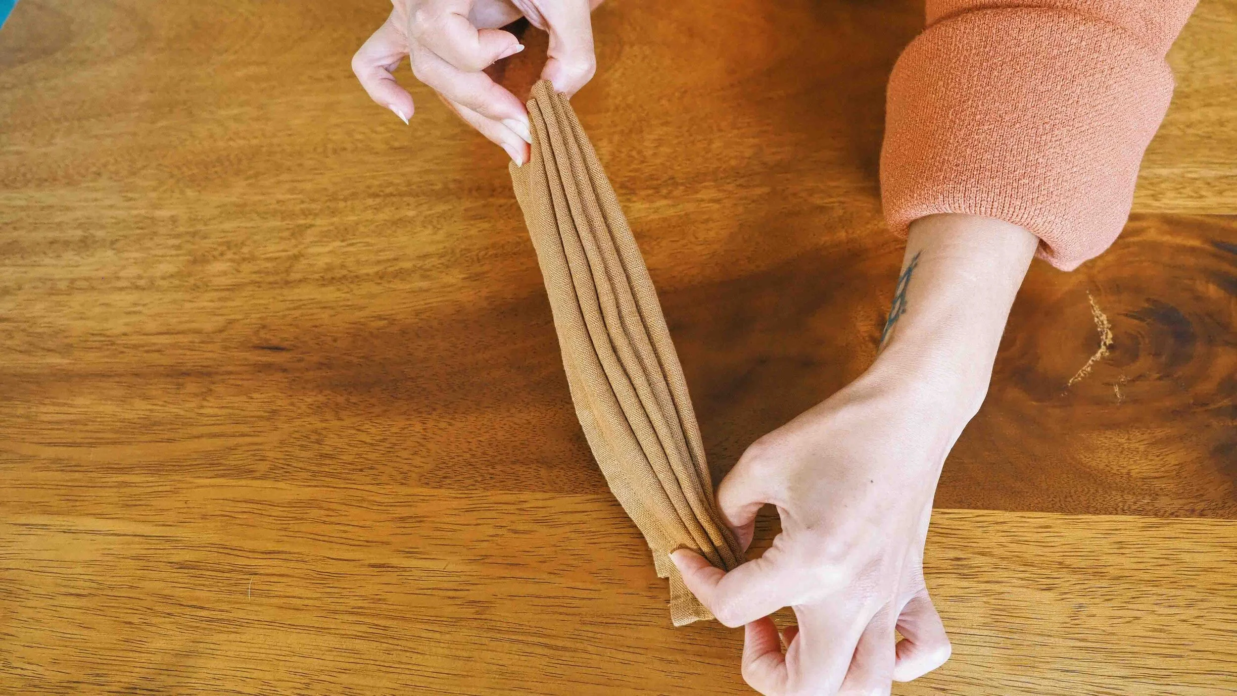Fold the bottom edge of the napkin up by 1.5cm/2cm.