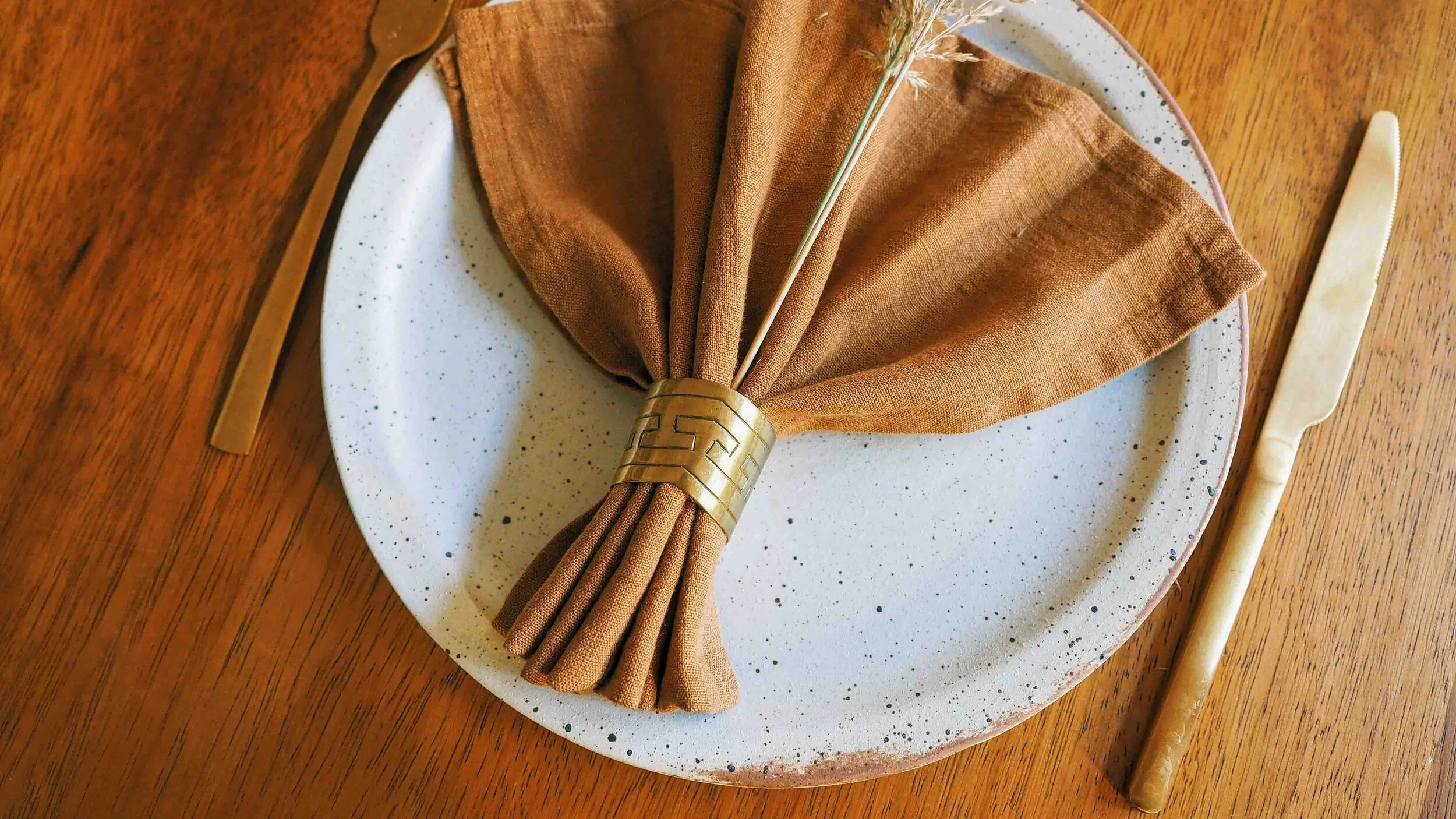 We have some fab brass napkin rings in Collection One, so to give you some styling ideas, follow this step by step guide to create a beautiful display. For Christmas, for your date night, or just for you and your table:)